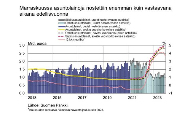 Asuntolainoja nostettiin marraskuussa enemmän kuin vastaavana aikana edellisvuonna