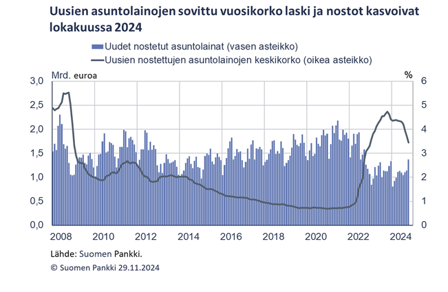 Uusien asuntolainojen korko nousi hieman syyskuussa