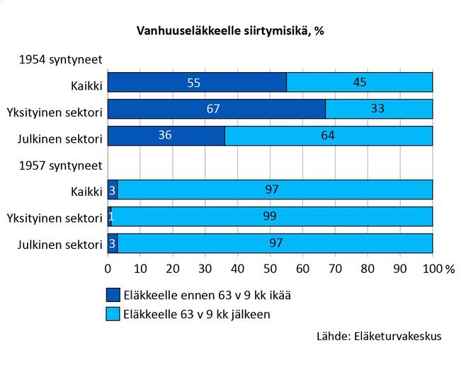 Vanhuuseläkkeelle siirtyminen myöhentynyt merkittävästi
