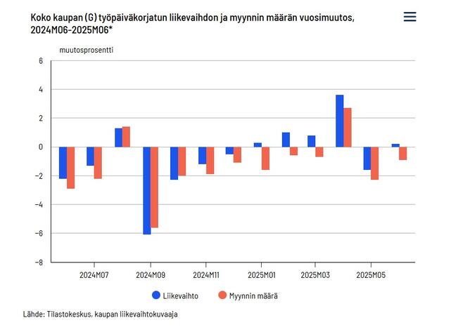 Kaupan liikevaihto kasvoi 0,2 prosenttia kesäkuussa