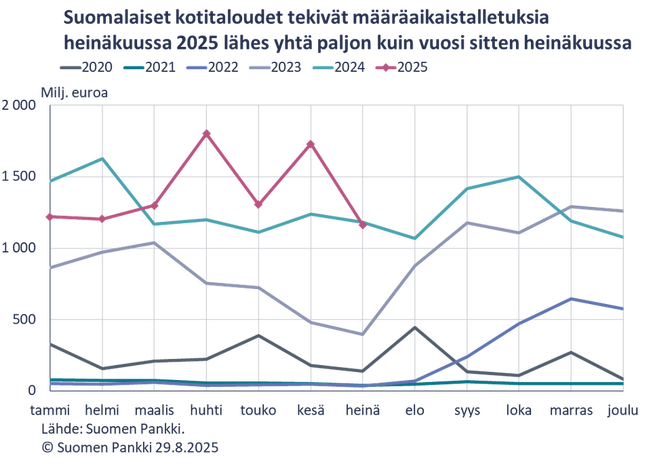 Kotitalouksien määräaikaistalletusten korot laskeneet