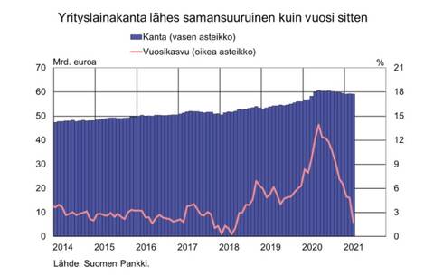 Yrityslainakanta lähes samansuuruinen kuin vuosi sitten
