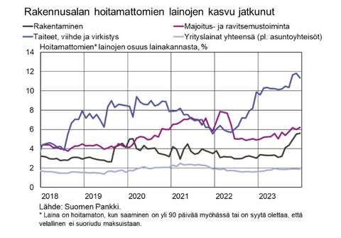 Rakennusalan hoitamattomien lainojen kasvu jatkunut