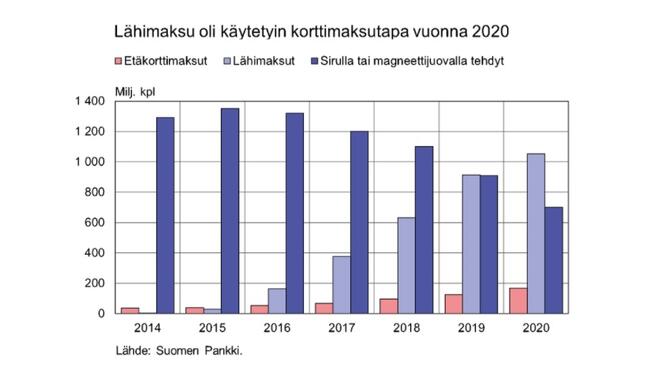 Korttimaksujen kokonaismäärä laski, lähimaksun suosio kasvoi