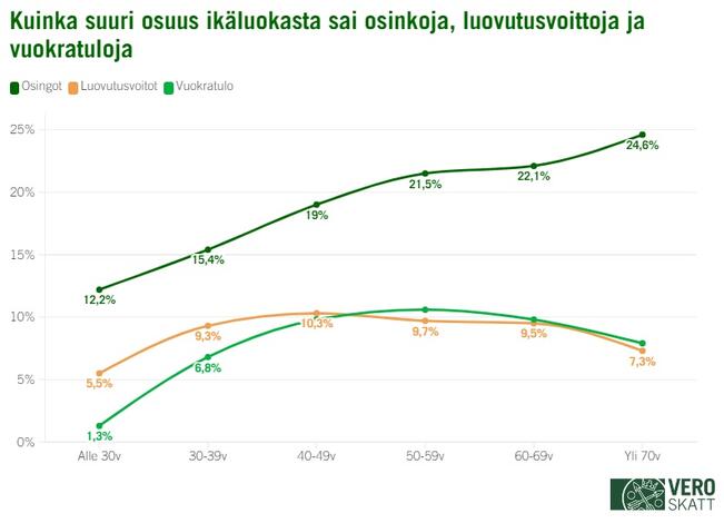 Osinkotulot kasvoivat, vaikka pääomatulot kokonaisuudessaan laskivat