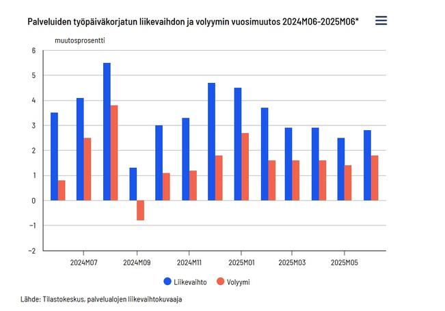Palveluiden liikevaihto kasvoi