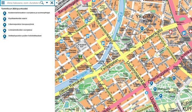 Puita kaadetaan Vanhalla Suurtorilla, Kupittaanpuistossa, Kerttulinkadulla ja Samppalinnassa