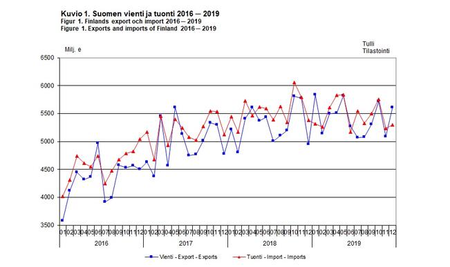 Tavaraviennin arvo kasvoi kaksi prosenttia viime vuonna, kauppataseen alijäämä selvästi pienempi kuin vuotta aiemmin