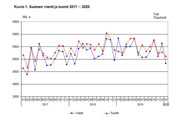 Paperimassan, öljyjalosteiden ja henkilöautojen viennin arvo laski jyrkästi tammikuussa