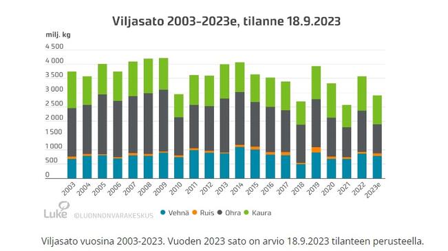 Viime vuoden viljasato jäi niukaksi, ohrasta ja kaurasta heikoin sato vuosikymmeniin