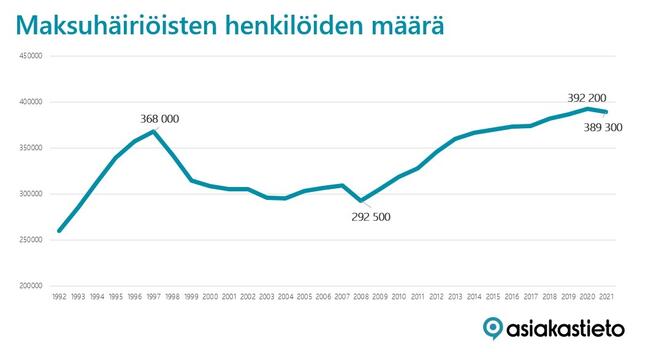 Maksuhäiriöisten henkilöiden määrä väheni ensimmäistä kertaa 13 vuoteen