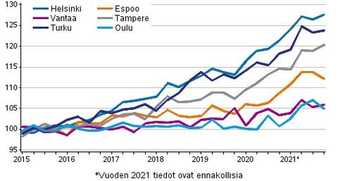 Vapaarahoitteisten asuntojen vuokrat nousivat koko maassa 0,5 prosenttia huhti–kesäkuussa vuodentakaisesta. Pääkaupunkiseudulla vapaarahoitteiset vuokrat kuitenkin laskivat 0,3 prosenttia, kun muualla maassa nousua nähtiin 0,9 prosenttia. Vuokrat nousivat suurista kaupungeista eniten Rovaniemellä (2,0 %) ja laskivat eniten Vantaalla (-0,8 %).