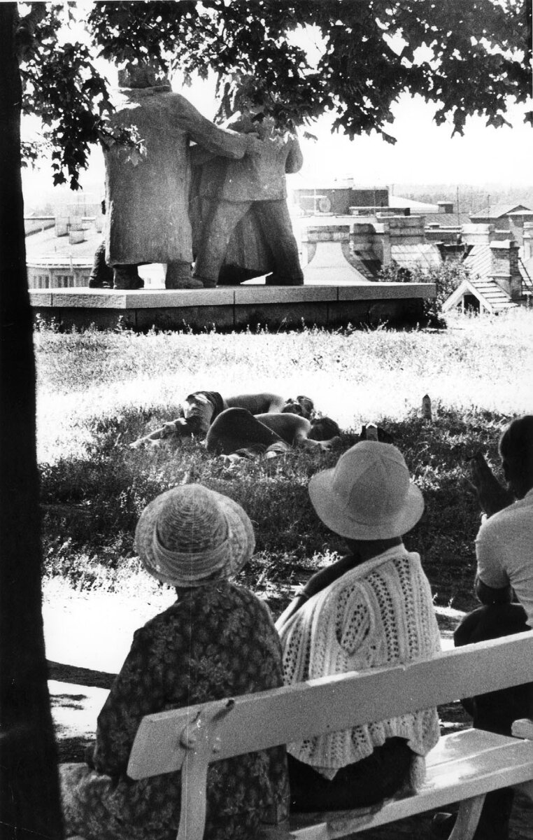 Kuvanveistäjä Antti Louhiston suunnittelemasta teoksesta tuli yksinkertaisesti liian suuri ja sille piti etsiä uusi sijoituspaikka. Puolalanpuistosta löytyi tarpeeksi väljyyttä ja siellä se ollut kaiken kansan ihasteltavana nyt jo 45 vuotta.