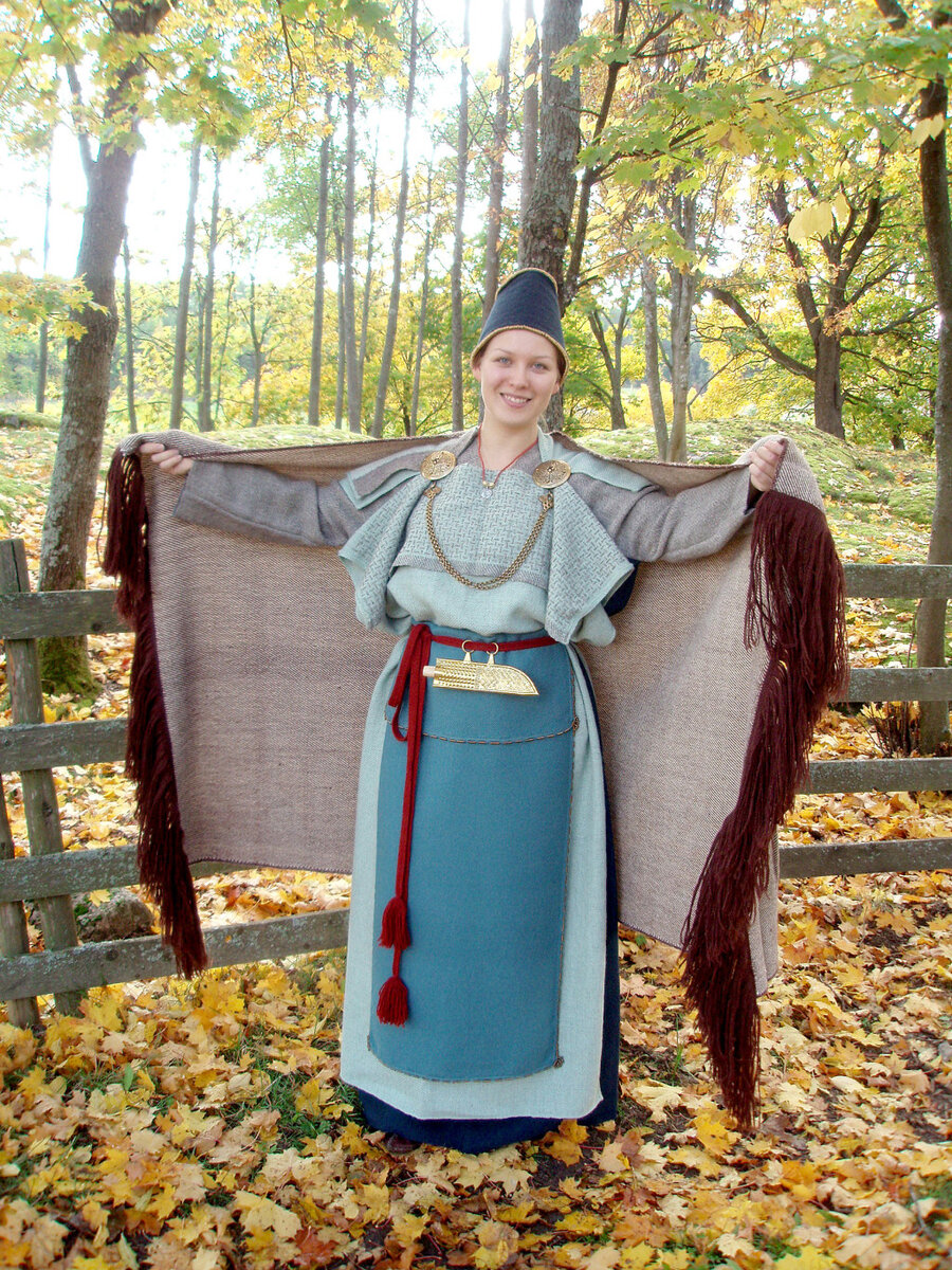 Puvun alusmekko on ommeltu kahdesta erilaisesta kankaasta. Yläosa on harvaa ja pehmeää harmaata toimikasta. Helmaosa on tummansinistä, tiivistä ja jäykkää kangasta, jota oli säilynyt haudassa vain yksi palanen. Vähäiset jäänteet jättivät paljon sijaa arvailuille vaatteen rakenteesta.