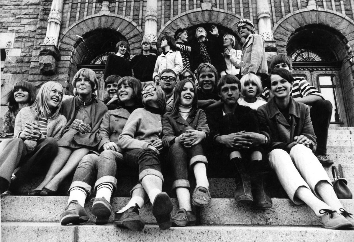 – Pojat olivat semmoisia rasvalettejä, paskasakkilaiset. Meidän jengin pojilla oli siisti Beatles-tukka, ei se mikään kauhean pitkä tukka, kun nyt ajattelee. Paskasakkilaisten tytöillä oli tupeeratut tukat ja meillä oli pitkät siistit, vähän Bridget Bardot-tyyliset, pitkä kauniit tukat, muistelee Saari-Uusimäki.