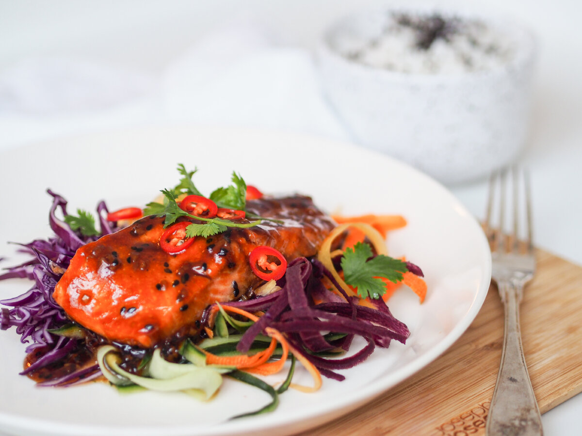 Ravintoloissakin suosittu teriyaki-lohi maistuu ja näyttää lautasella mahtavan hyvältä. Mutta myös siltä, että sen on oltava hyvin vaikeaa ja hidasta valmistaa. Herkullinen annos valmistuu kuitenkin puolessa tunnissa, ollen erittäin hyvää ja helppoa arkiruokaa. Teriyaki-lohen seuraksi voi rouskutella rapsakoita ja värikkäitä kasviksia, jotka raastetaan nopeasti annoksen joukkoon. Isompaan nälkään voi lisäksi keittää myös riisiä. Teriyaki-lohi saa makunsa inkivääristä, valkosipulista, teriyaki-kastikkeesta, seesaminsiemenistä sekä soijasta.