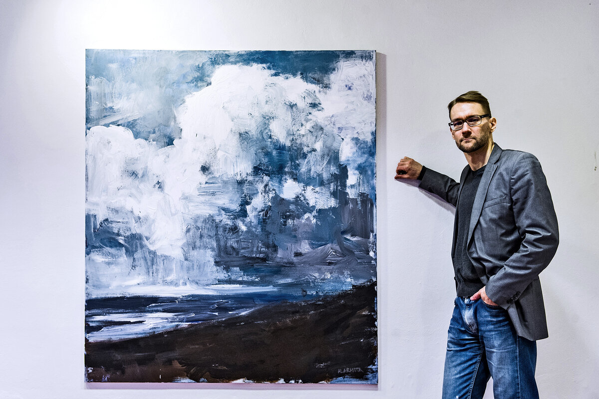 – Olen sitä miettinyt, että ehkä taivasta on tullut maalattua viime vuosina niin paljon, jotta se olisi vastapainona työlle. Olen päivittäin tekemisissä sodan ja poliittisten konfliktien kanssa. Ehkä sen takia taivas ja pilvet ovat olleet niin tärkeitä, Alaranta pohtii.