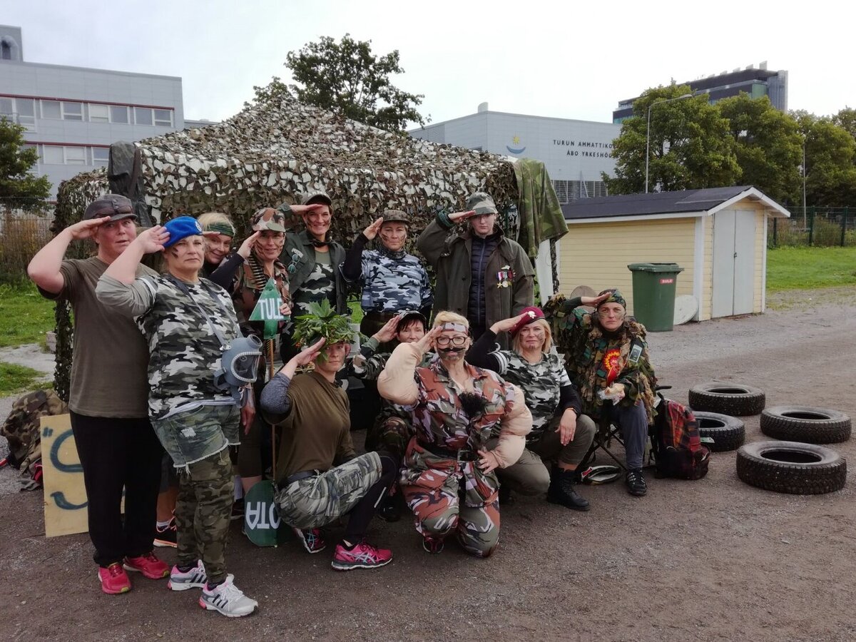 – Olemme olleet unikekoja, nunnia, hippejä ja viimeksi varustauduimme armeijatyyliin. Ensi lauantaina näette, mitä tällä kertaa on luvassa. Varsinais-Suomen Pesiksestä olemme jo selvitelleet, mitä kaikkea rekvisiittaa on luvallista tuoda Kupittaalle. Asupuoleen panostetaan aina täysillä. Meillä on jo seuraavalle vuodellekin suunnitelmat valmiina, Sirola kertoo.