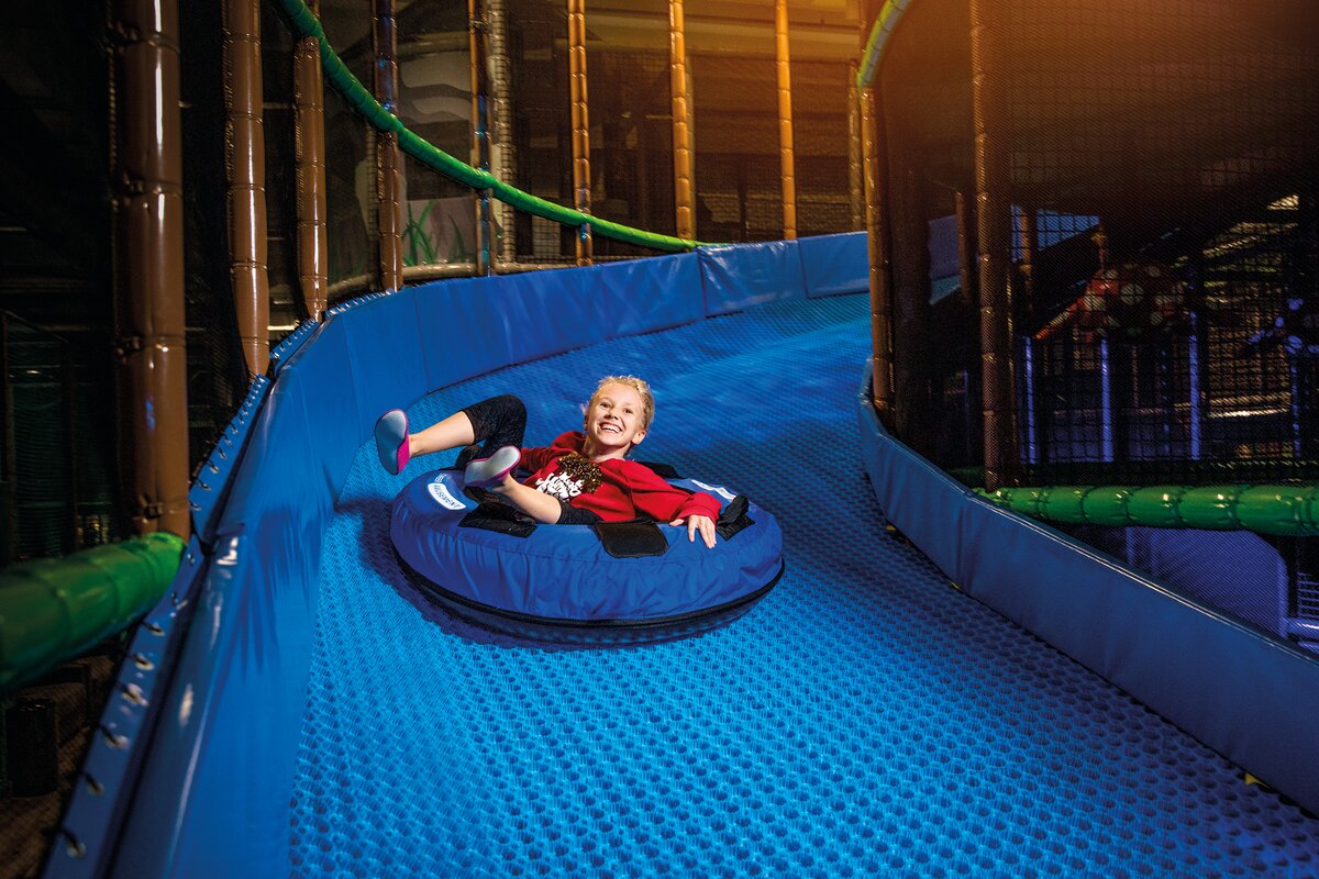 Raision puistossa seikkaillaan viidakkomaailmassa. Jännitystä ja vauhtia tarjoavat korkea tulivuoriliuku, äkkijyrkkä dropslide-liukumäki ja donitsiliukumäki. Puiston suosikiksi veikataan bagjumpia, johon voi pomppia suoraan trampoliinilta. Hohtava pallomeri ja iso taaperoalue eläinhahmoineen houkuttelevat pikkutenavia touhuamaan.