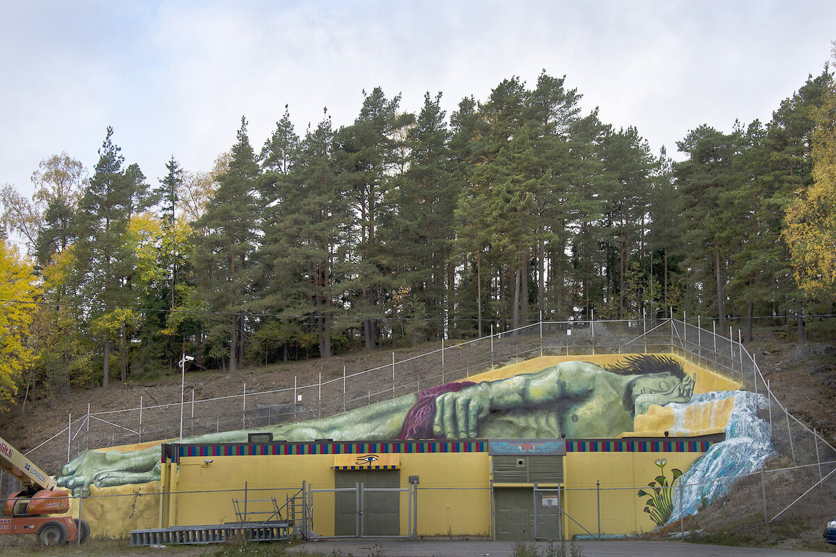 – Vuonna 2015 oli Energiateollisuus ry:n ideakilpailu, jonka voitin. Turku Energia haki kaasukellonsa kaasupalloon teosta, johon sitten tein Window of the Sun -taideteoksen. Projisoin Nasan tuottamaa aurinkokuvaa yksitoista metriä korkean kaasupallon pintaan. Tein pallolle tulipyrstön punaisesta hakkeesta. Tätä kautta päädyin muraaleihin. Samana kesänä tein myös Vuorenneito-muraalin ja ympäristötaideteoksen Luolavuorentielle, muistelee Kosonen.