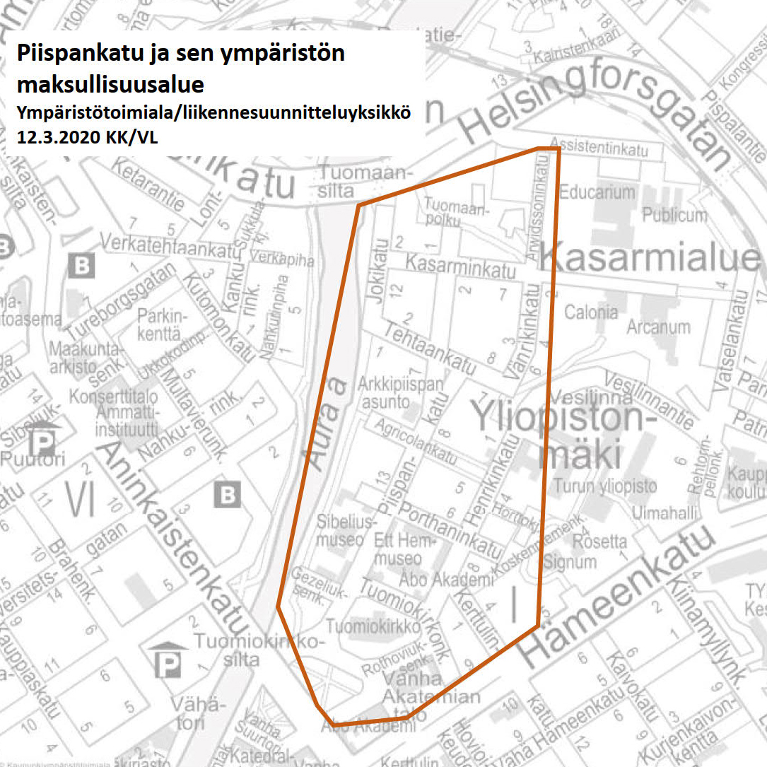 Pysäköinti Piispankadulla ja sen lähikaduilla muuttuu maksulliseksi pääosin arkisin kello 9–18 ja maksu on 0,60 euroa tunnilta. Kerttulinkadun, Hämeenkadun ja Henrikinkadun välisellä osuudella sekä Henrikinkadun eteläpäässä noudatetaan kuitenkin keskusta-alueen maksullisuusaikaa, joka on arkisin kello 9–18 ja lauantaisin kello 9–15. Näillä alueilla maksu on 1,5 euroa tunnilta.