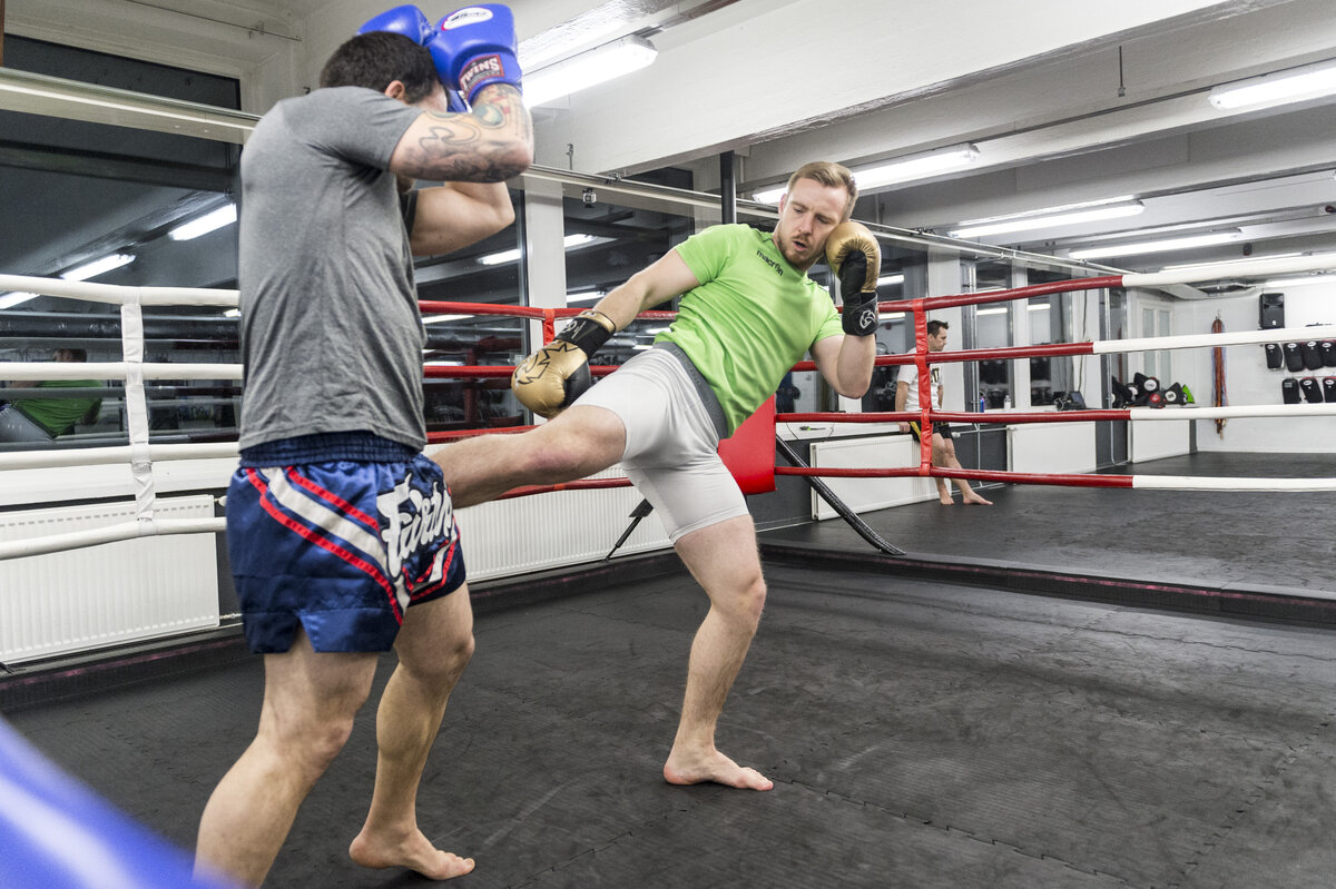 Thainyrkkeilijä Daniel Forsberg kipuaa vapaaotteluhäkkiin