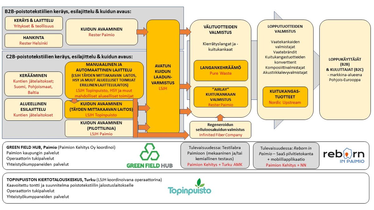Hankehakemuksien kokoavana alustana on Rester Oy:n käynnistämä tekstiilien kiertotalouskeskittymä Green Field Hub Paimioon sekä myöhemmin LSJH:n poistotekstiilien jalostuslaitoksen rakentuminen Turun Topinpuistoon. Topinpuiston jalostuslaitos mahdollistaa koko Suomen kotitalouksilta erilliskerätyn poistotekstiilin laajamittaisen käsittelyn ja kierrätyksen.