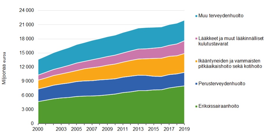 Suomen terveydenhuoltomenot olivat 22,0 miljardia euroa vuonna 2019. Terveydenhuollon menoissa oli kasvua reaalisesti 3,0 prosenttia vuoteen 2018 verrattuna. Asukasta kohden menot olivat 3 983 euroa.