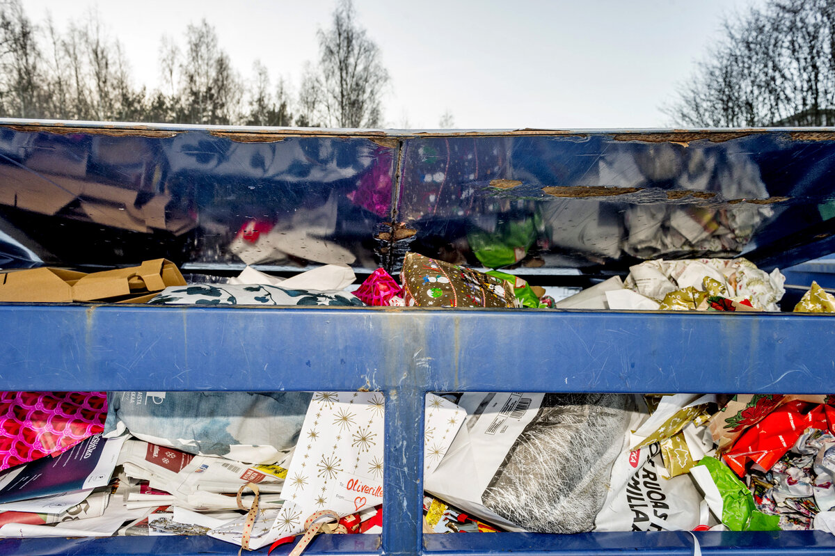 Joululahjojen kiiltävät käärepaperit kuuluvat polttokelpoisen jätteen astiaan, eivät paperinkeräykseen. Polttokelpoiseen jätteeseen kuuluvat myös pakettinarut. Säästä siisti lahjapaperi ensi jouluksi tai kääri lahjat kauniisti sanomalehtipaperiin, jonka voit lajitella käytön jälkeen paperinkeräykseen. Lahjat voi paketoida myös esimerkiksi uudelleenkäytettäviin kankaisiin, lahjakasseihin tai -pusseihin.