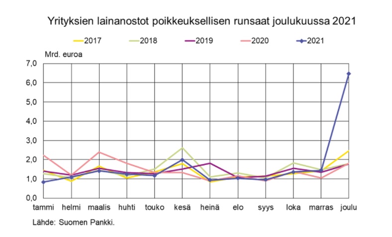 Yrityslainoja nostettiin poikkeuksellisen paljon joulukuussa