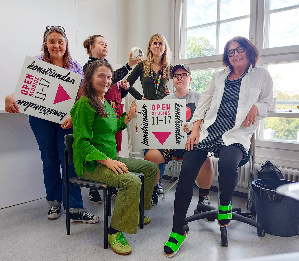 Taiteen talossa pääsee tutustumaan kolmannessa kerroksessa Sini-Meri Hedbergin, Paula Suomisen, Jaana Valtarin ja Tiina Vainion työhuoneisiin sekä neljännessä kerroksessa Kristina Isakssonin, Lena Kuiviston, Minna Maija Lappalaisen, Lotta Lekan, Jone Mutkan ja Reija Palo-ojan työhuoneisiin sekä grafiikanpajaan, jossa Taru Salonen esittelee työskentelyään.
