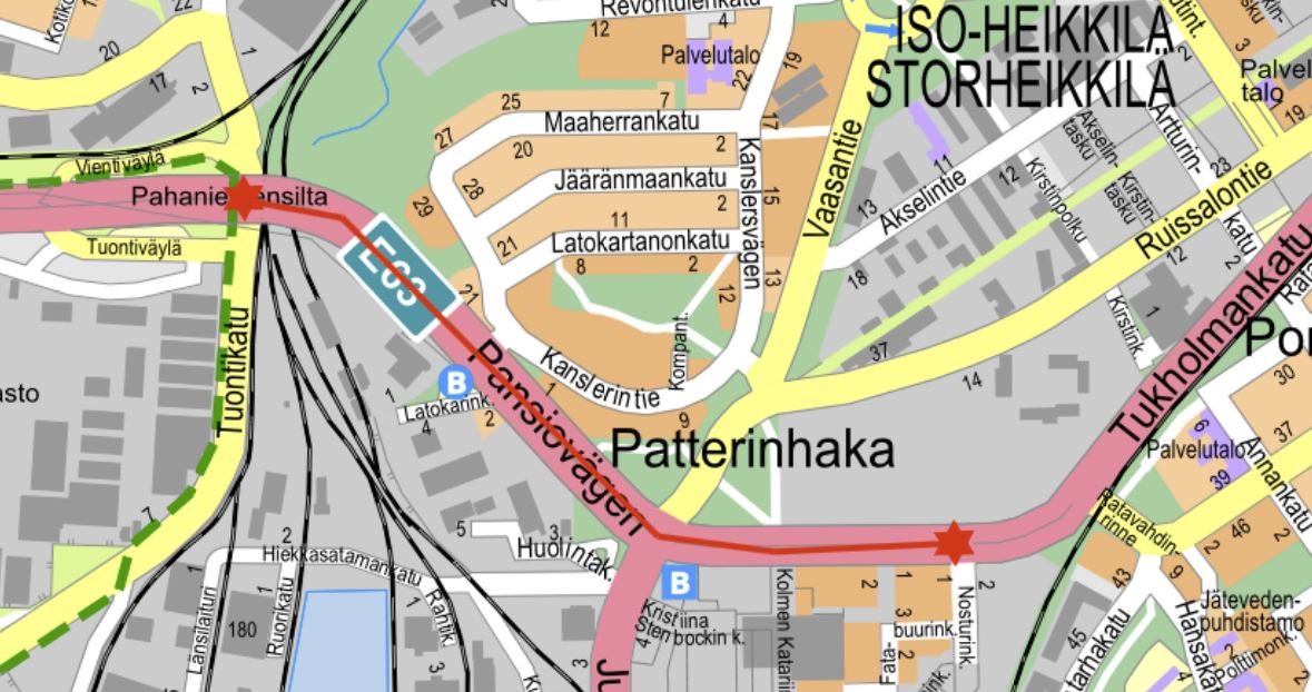 Asfaltin paikkaaminen jatkuu Pansiontiellä 10. lokakuuta saakka Pahaniemensillan ja Nosturinkadun välillä.