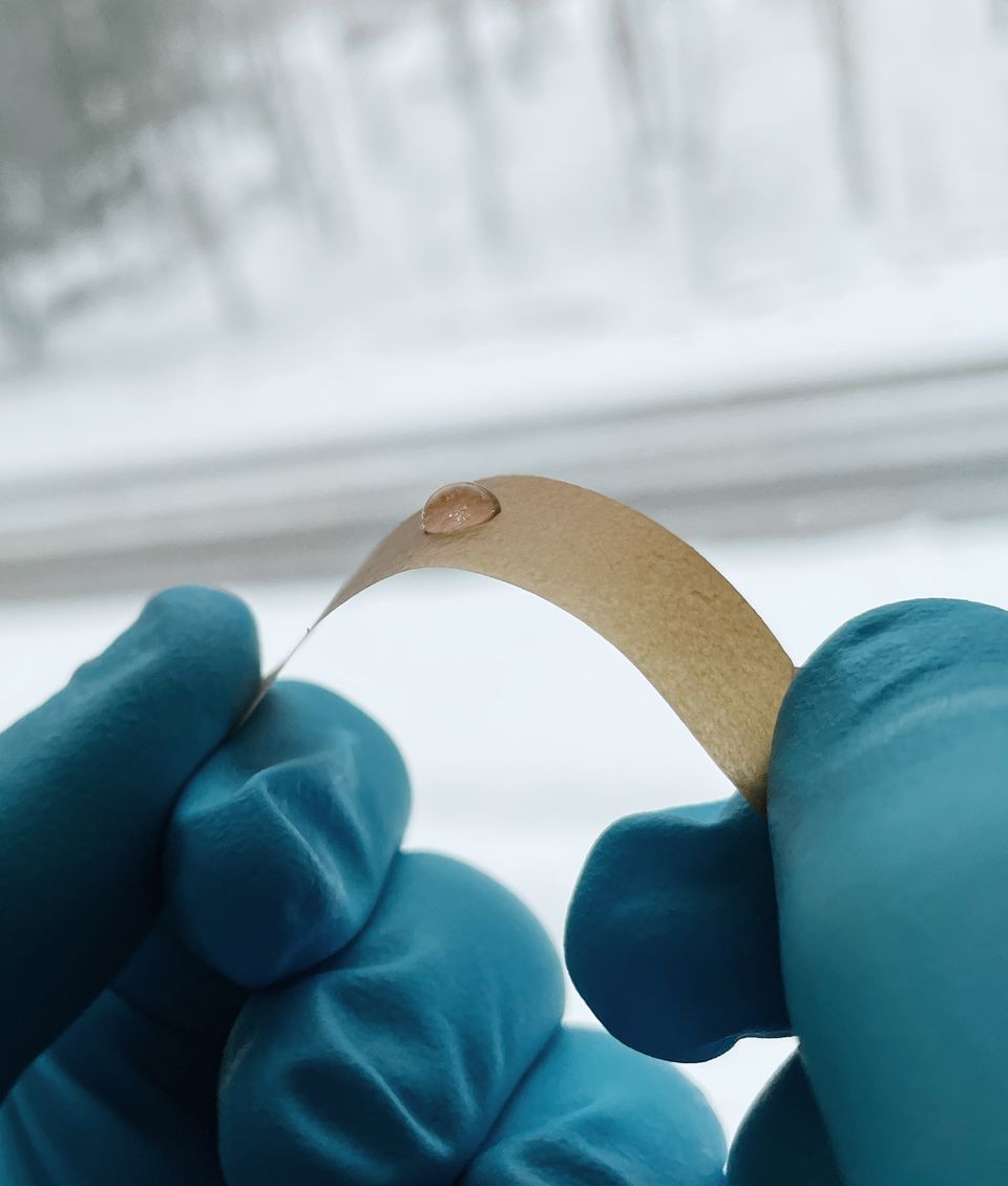 Tutkijat lisäsivät emulsion nanoselluloosaan ennen varsinaisen kalvon valmistamista. Näin polymeeri leviää tasaisesti selluloosaverkkoon, mikä lisää materiaalin märkälujuutta ja vedenkestävyyttä ja säilyttää samalla kaikki selluloosasäikeiden positiiviset ominaisuudet.