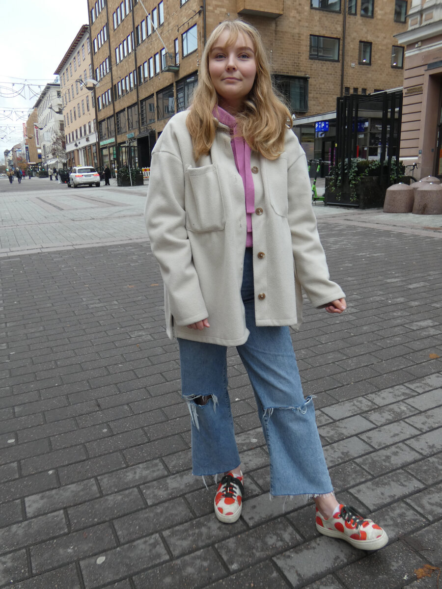– Itse tykkään hirveän paljon Marimekosta. Yritän yhdistää sitä omaan rentoon tyyliini, kertoo Kiia Kaikkonen, 20.