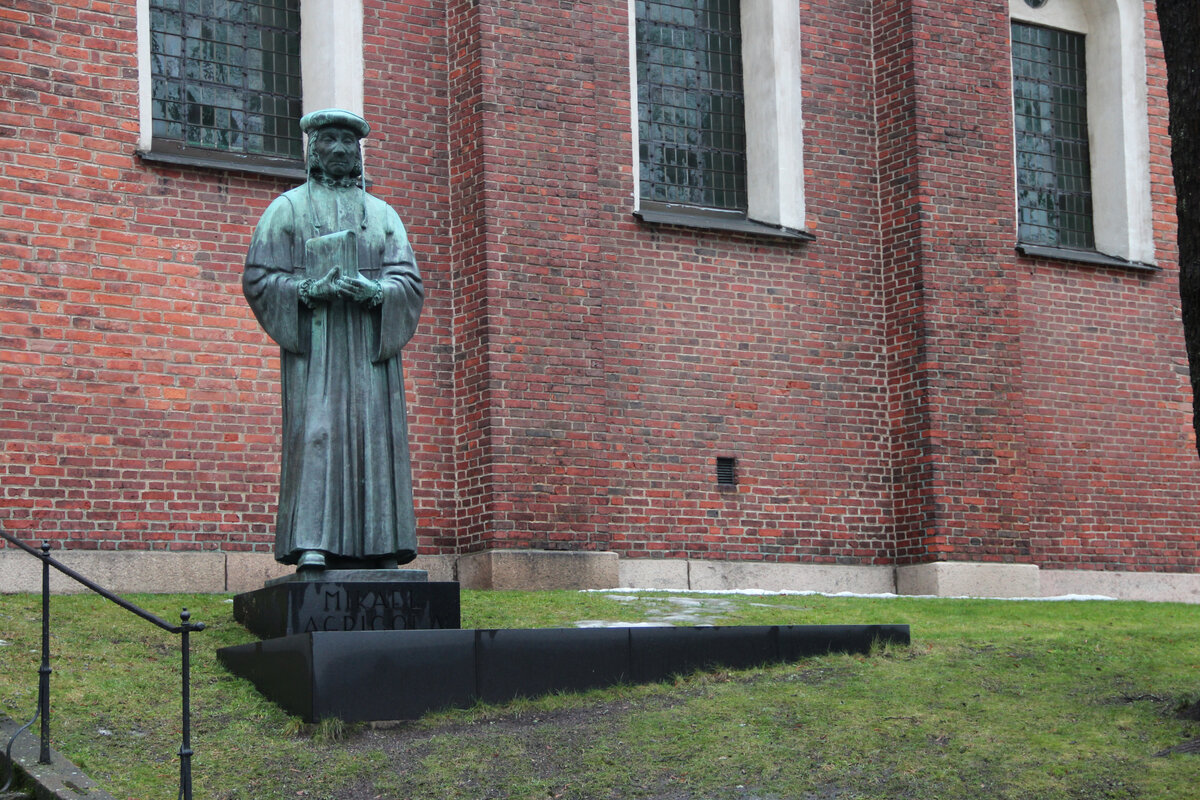 Helatorstai vuonna 1952 oli Turussa suuren juhlan päivä. Tuolloin nimittäin Turun tuomiokirkon seinustalla paljastettiin Mikael Agricolan patsas.