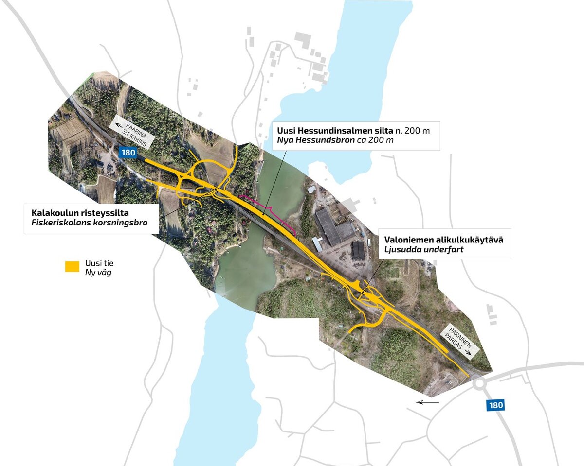 Hessundinsalmen veneväylä suljetaan uudestaan vesilain lupaehtojen mukaisesti 1. lokakuuta ja avataan veneliikenteelle keväällä 1.5.2024 mennessä. Veneväylä suljetaan uuden sillan teline-, muotti-, raudoitus- ja valutöiden vuoksi.