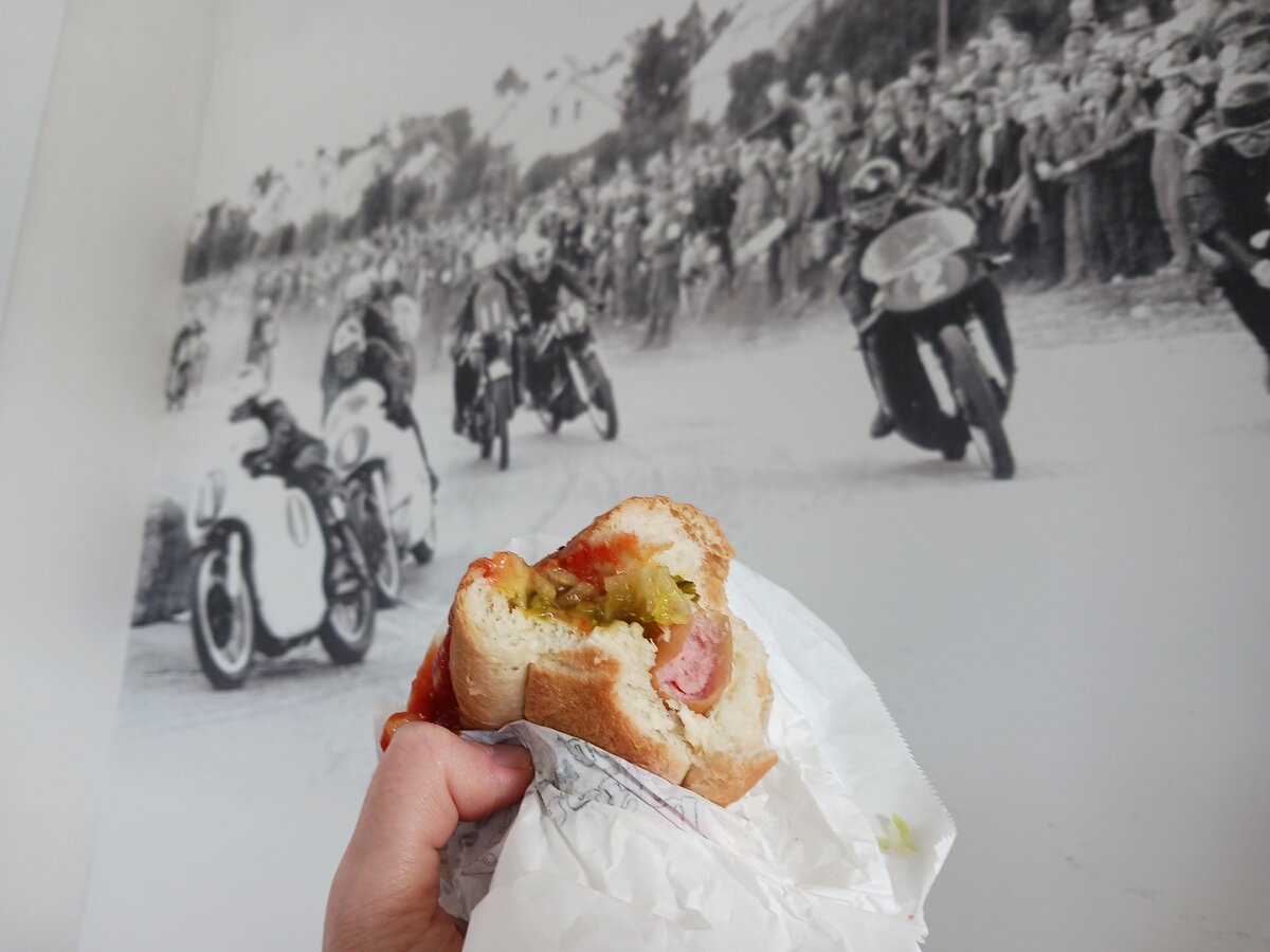 Jollei asiakas etukäteen tiedä asiaa, viimeistään grillin tiskillä ymmärtää asioivansa myös moottoriurheilijoiden kantapaikassa. Italian Monzan radalla vuonna 1973 menehtyneen turkulaislegenda Jarno Saarisen kuva koristaa seinää. Lukuisat otokset Itäharjun ajoista vuosilta 1955–65 kertovat paitsi alueen historiasta, myös ajoperinteen elävöityksestä.
