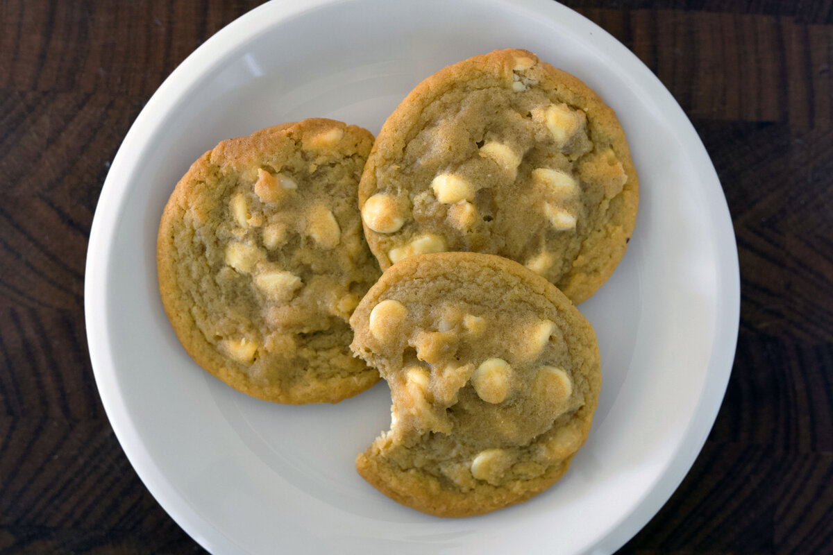 Valkosuklaa-macadamiakeksien salaisuus piilee voin ja sokerin vaahdottamisessa