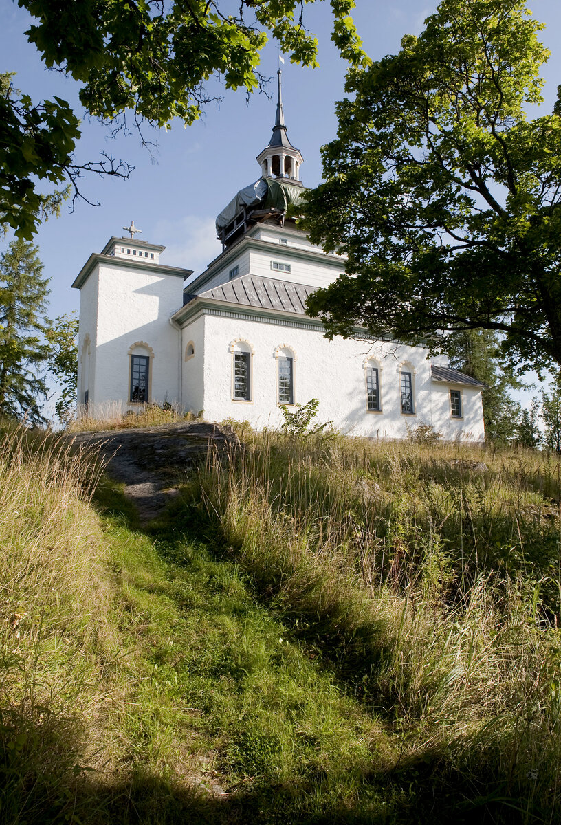 Bremer myös suunnitteli kirkon itse, mutta sitä tarina ei kerro miksi kiinalaista pagodia jäljitteleväksi. Pikku kummulle rakennettu kirkko valmistui vuonna 1829.