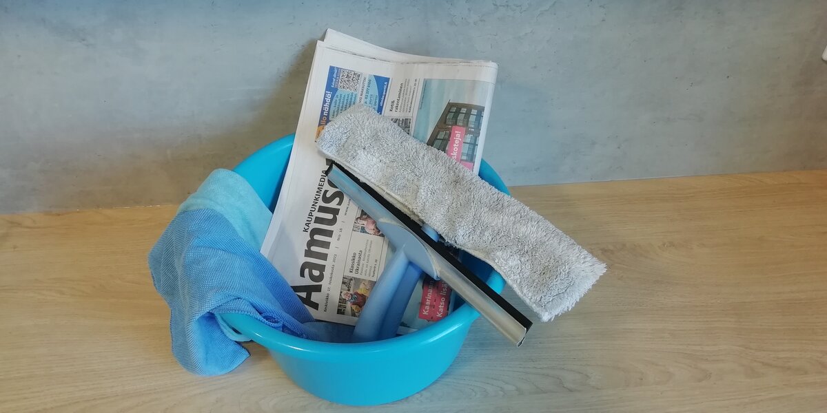 Pesun jälkeen ikkunat voi kiillottaa myös sanomalehdellä. Rytistä esimerkiksi luetun Aamuset-lehden aukeama tolloksi ja hankaa ruudut kiiltäviksi kuivalla sanomalehtipaperilla.