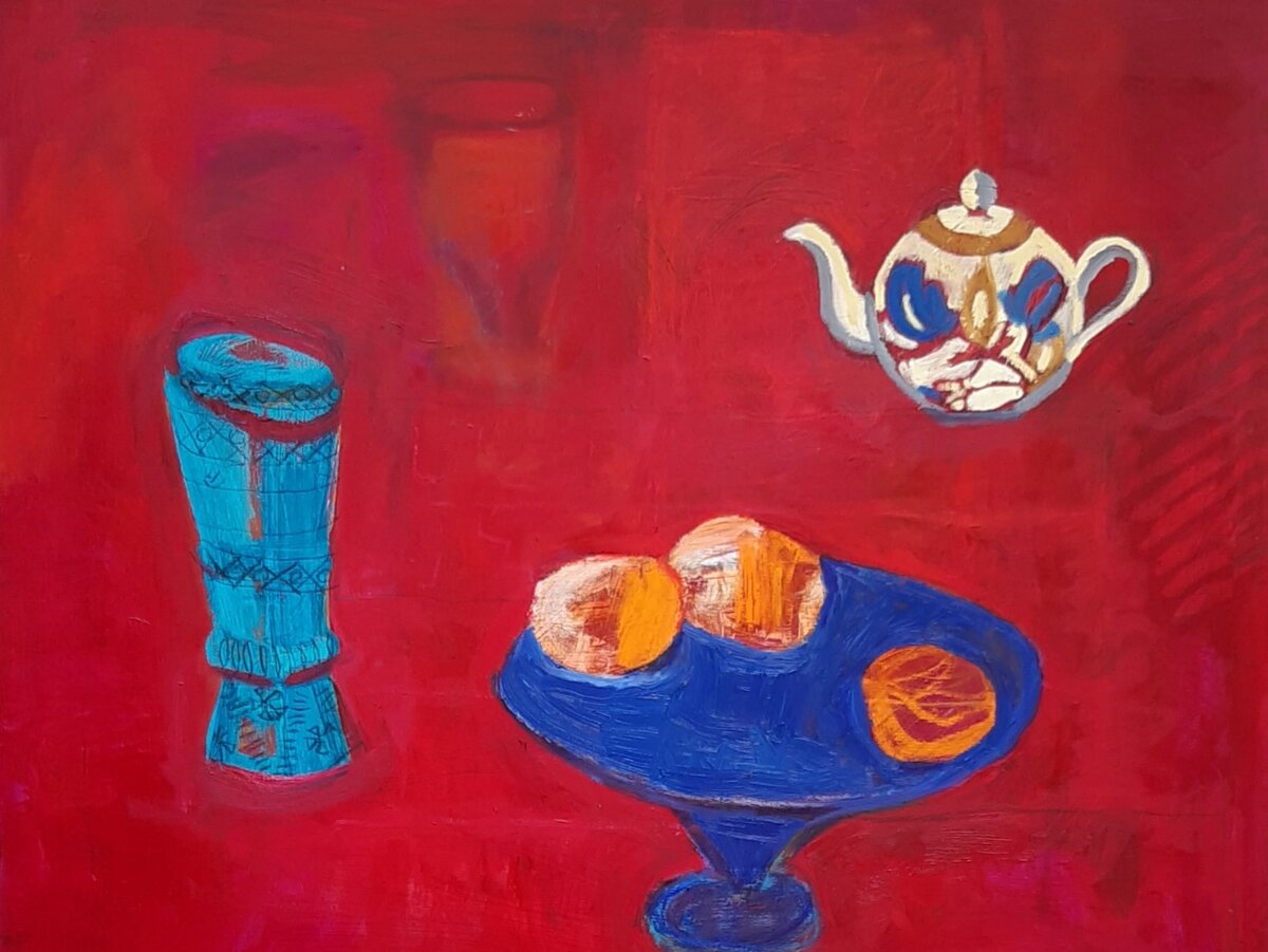 Puhtaita värejä rakastavalla taiteilijalla on juuri nyt menossa punainen kausi. Oranssi on ollut hänen luottovärinsä koko elämän ajan, mutta väriskaala on laaja ja vaihtelee koko ajan.