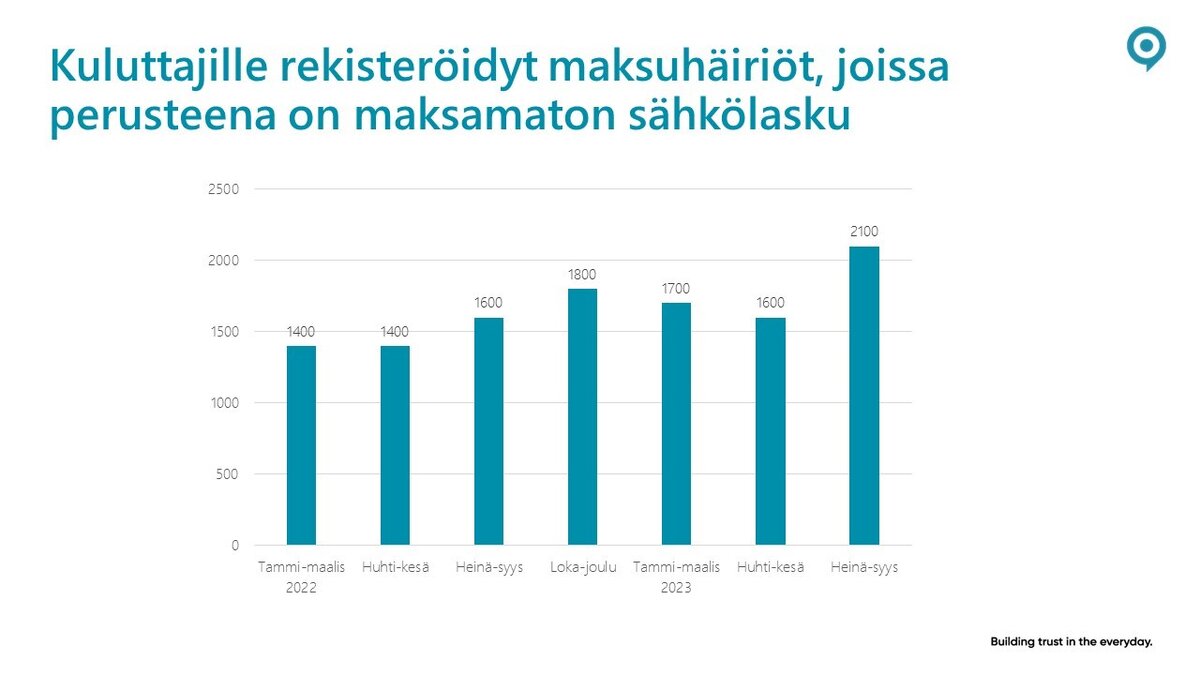 – Maksuhäiriömerkintä tulee aina viiveellä eli pitkän ajan kuluttua varsinaisen laskun eräpäivästä. Viime talven isoja laskuja maksellaan vieläkin ja osalla kuluttajista saattaa olla myös varsin hintavia kiinteitä sähkösopimuksia. Nyt kun monet muutkin arjen kulut ovat kasvaneet, voi pienikin yllättävä menoerä viedä maksukyvyn nollaan. Silloin joku lasku jää kokonaan hoitamatta, puntaroi viestintäpäällikkö Ville Kauppi Asiakastiedosta tiedotteessa.