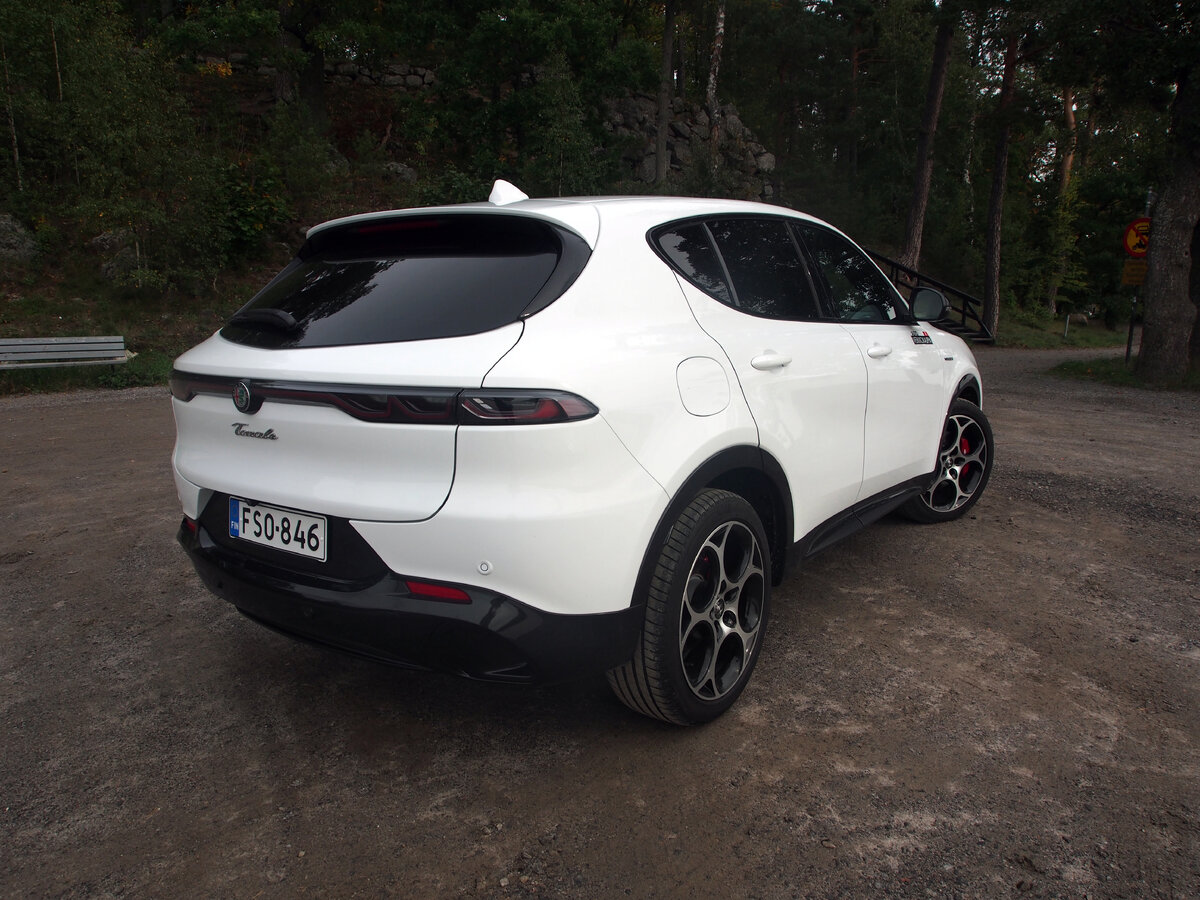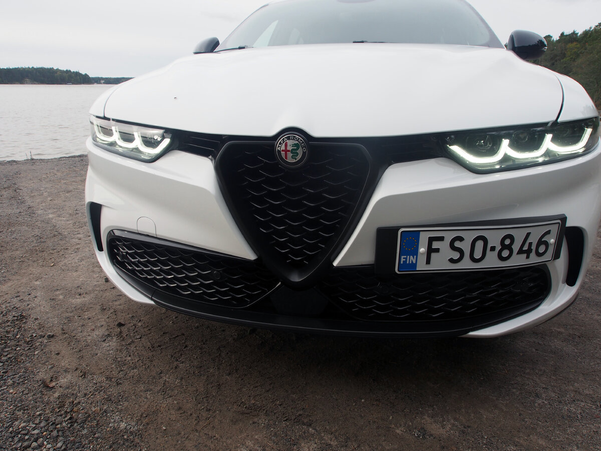Malliston uusinta tulokasta edustaa Alfa Romeo Tonale, joka on hieman pienempi ja huokeampi SUV kuin Stelvio. Tonalea myydään lataushybridinä ja kevythybridinä, ja koeajoon valikoitui jälkimmäinen. Kevythybridi on polttomoottoriautoissa yllättävänkin vähän suosittu vaihtoehto, sillä se on itselataavana täysin vaivaton ja pienentää kuitenkin polttoaineen kulutusta selvästi. Tosin pelkällä sähkömoottorilla ajaminen onnistuu vain aivan matalissa nopeuksissa, lähinnä liikenneruuhkissa madellen.