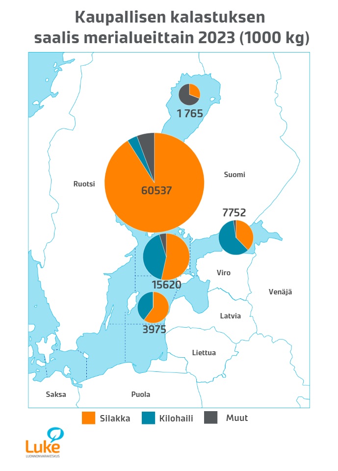 Tiedot perustuvat Luken laatimaan ennakkoarvioon merialueen kaupallisen kalastuksen saaliista. Silakan, kilohailin, lohen ja turskan saaliit ovat ennakkoarviossa varsin luotettavia. Sen sijaan muiden lajien saalismäärät voivat vielä tarkentua jonkin verran lopullisessa tilastossa, joka valmistuu toukokuussa.