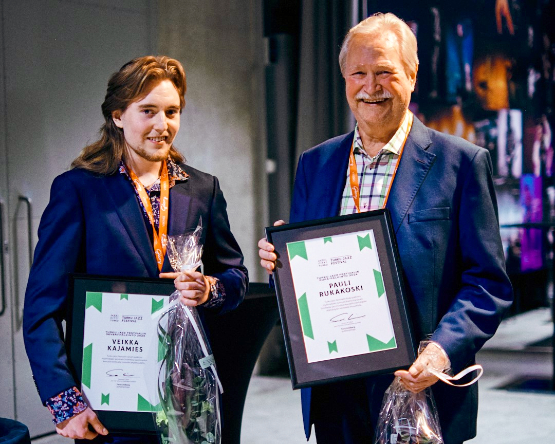 Perinteisen vuoden artistin palkinnon lisäksi Turku Jazz Festival on lanseerannut tänä vuonna kaksi uutta palkintoa. Festivaaliperjantaina Logomossa pidetyssä palkintotilaisuudessa uusi elämäntyöpalkinto myönnettiin Pauli Rukakoskelle ja nuoren lahjakkuuden palkinnon pokkasi Veikka Kajamies.