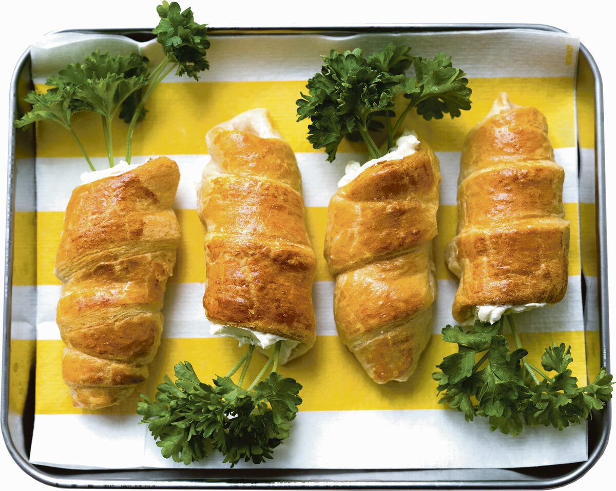 Tuorejuustolla täytetyt croissantit persiljanaateilla piristävät keväistä aamiaispöytää