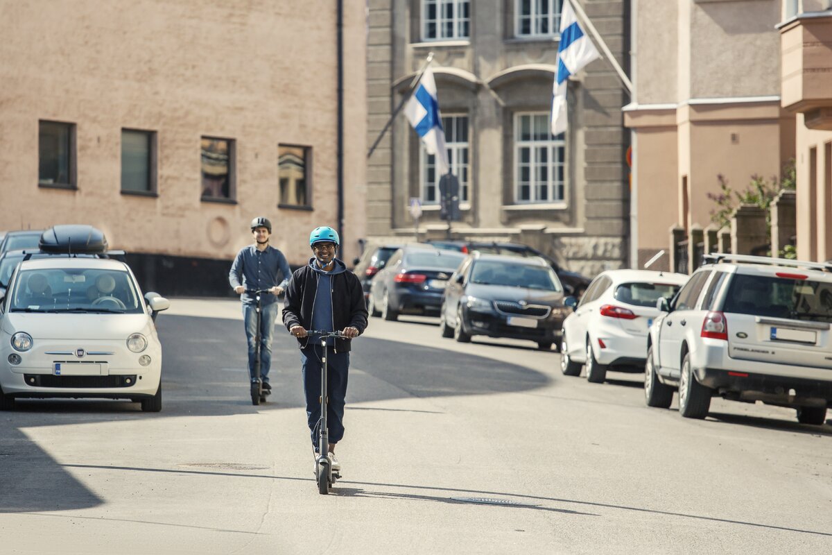 – Kun ottaa vuokrakäyttöisen sähköpotkulaudan käyttöön, kannattaa kääntää pyöräilijäasetukset päälle. Eli käytetään pyöräteitä, ei jalkakäytäviä. Jos pyörätietä ei ole, ajetaan pientareella tai ajoradalla. Pysähdytään punaisiin, näytetään suuntamerkkiä, annetaan kävelijöille tietä suojatiellä ja niin edelleen, Pohjonen luettelee.