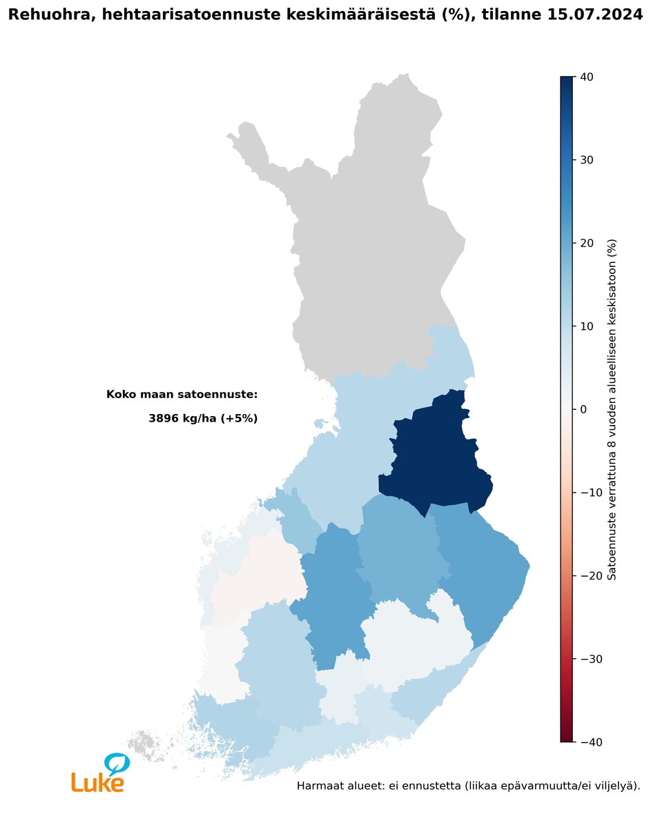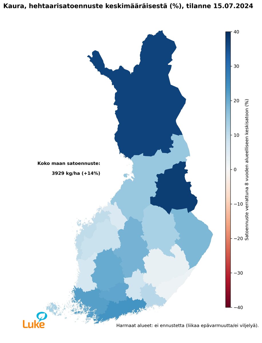 – Heinäkuussa julkaistavan ennusteen avulla voidaan arvioida, miten kotimainen vilja riittää ruoaksi, rehuksi, maltaaksi ja muihin käyttötarpeisiin. Uskomme, että tieto auttaa myös viljelijöitä, kun he harkitsevat täydennyslannoituksen tarvetta. Toivomme tilaston käyttäjiltä palautetta, jotta voimme kehittää tilastointia edelleen, kertoo Luken yliaktuaari Anneli Partala tiedotteessa.