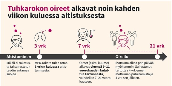 Rokottamattomien lasten vanhempia, rokottamattomia aikuisia, rokottamattomia raskaana olevia ja immuunipuutteisia (vastustuskyky voimakkaasti alentunut) kehotetaan ottamaan mahdollisimman pian yhteyttä omaan terveyskeskukseen tilanteen arvioimiseksi.