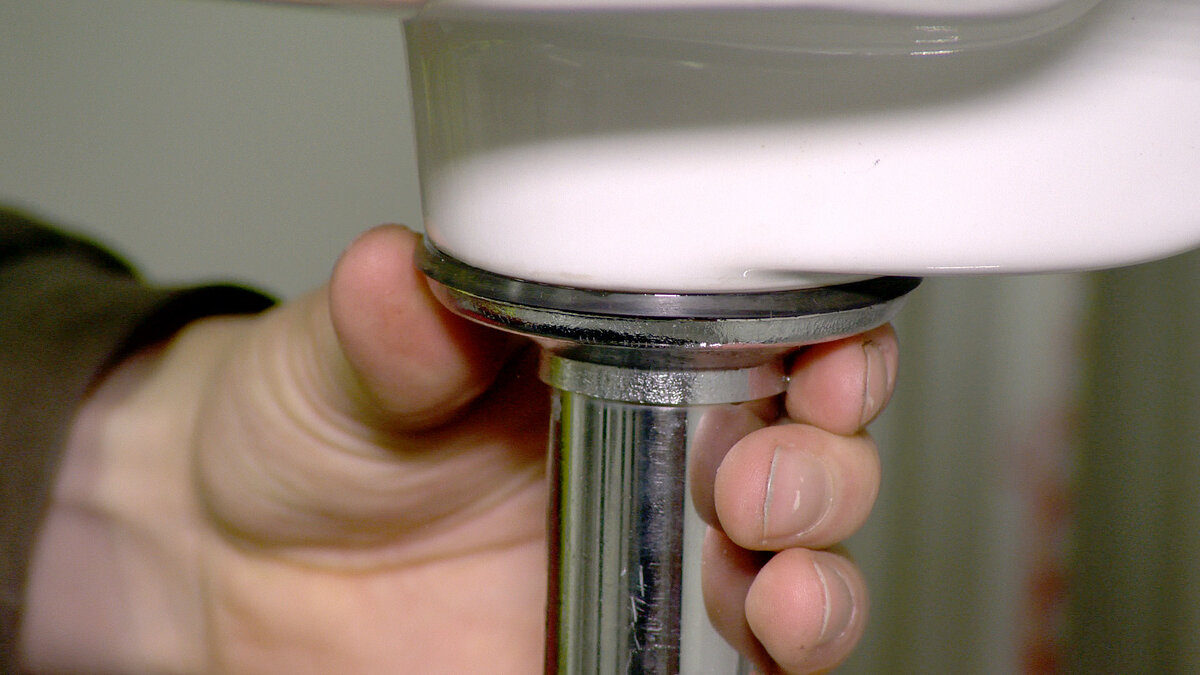 Kun vati on sijoitettu lavuaarin alle, ruuvataan viemäriputken kiristysrengas auki. Jollei se lähde helposti, voi varovasti käyttää putkipihtejä. Jos putket ovat metallia ja liitos pahasti jumissa, voi kerrostalossa pyytää myös huoltomiestä apuun. Muoviset putket on kuitenkin helppo rassata itse, ja se kuuluu myös vuokralaisen perustehtäviin asunnon huollossa.